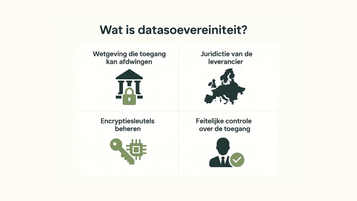 Datasoevereiniteit draait niet om waar data staat, maar om welke wetgeving toegang kan afdwingen. Welke partij de feitelijke controle heeft over toegang, sleutels en beheer.